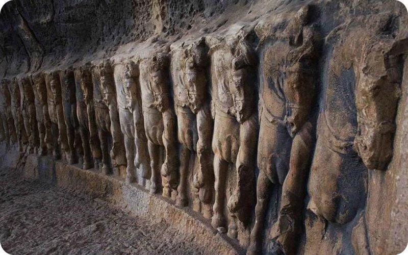 这些石刻包括六件萨珊时期的历史作品;三幅浮雕与沙普尔一世和巴赫拉姆有关,另外三幅展示了沙普尔一世战胜罗马人的场景。楚甘峡谷是传统楚甘游戏的场所,其面积达30平方米、描绘30多个人物的大型繁复浮雕非常壮观。