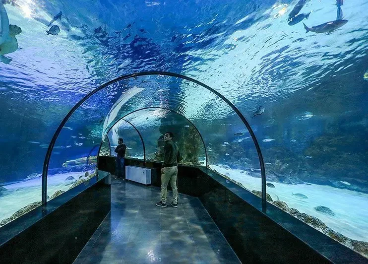 اذهب إلى نفق الأكواريوم في أصفهان. هذا الأكواريوم هو واحد من أكثر الأماكن السياحية تميزًا في أصفهان، أو بالأحرى أماكن الترفيه في أصفهان، ويغطي مساحة تبلغ 3500 متر مربع في حديقة ناجفان بأصفهان، تم تشغيله بالتعاون مع شركة أوشن أكواريوم التركية في بهمن 97. يحتوي على 33 حوضًا مائيًا بأحجام تتراوح بين 5 إلى 10 أمتار ويضم أنواعًا مختلفة من الأسماك المالحة والعذبة، ونجم البحر والكائنات المائية التي تم جمعها من 5 محيطات حول العالم. العالم تحت الماء، الذي كنا نراه فقط في الأفلام والبرامج الوثائقية، أصبح الآن متاحًا عن قرب.